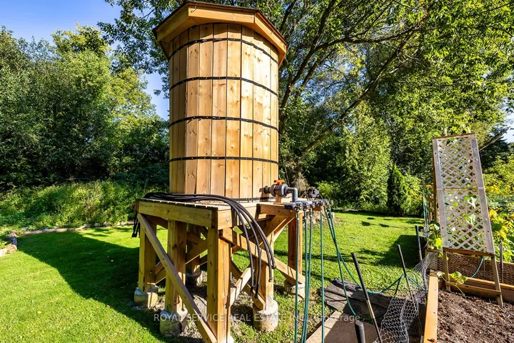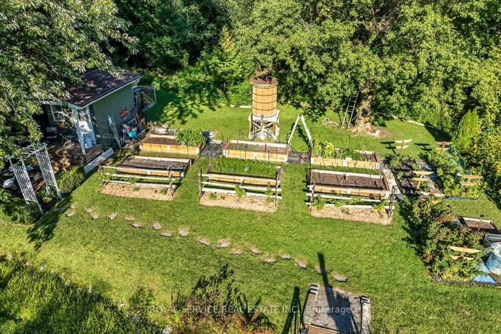 Welcome to this stunning country bungalow, a true retreat for nature lovers & garden enthusiasts alike. Nestled among mature trees & beautifully manicured perennial gardens, this home offers a rare blend of charm, functionality, & outdoor living at its finest. Step inside to an inviting living room, complete with a large bay window that fills the space with natural light, and electric fireplace. The heart of the home is the custom kitchen, showcasing stainless steel appliances, a double oven, double-drawer dishwasher, and a convenient breakfast bar. Custom cabinetry provides both style & storage, making this kitchen as practical as it is beautiful! The main floor features three spacious bedrooms, each with large windows & ample closet space. Halfway down the stairs you’ll find one of the hardest-working spaces in the house, the laundry room. Equipped with heated floors & direct access to the oversized two-car garage, this room makes everyday tasks effortless. The garage itself is ideal for hobbyists or professionals alike, with a built-in workshop, storage, and access to both the front and back yards. Continue to the fully finished basement, where a versatile kitchenette with plenty of storage adds convenience and flexibility. Just off this area, a dedicated cold room provides the perfect space for canning, or garden harvest storage. The large recreation room features a gas fireplace and a walk-out to the backyard, seamlessly blending indoor and outdoor living. Step outside to experience a backyard oasis unlike any other. Meandering walkways guide you through perennial gardens, vegetable plots with their own water tower & irrigation systems, and tranquil water features including a seasonal stream create a peaceful atmosphere. A greenhouse provides year-round gardening opportunities, while an enchanting bunkie complete with a double bed offers a delightful retreat for guests! Private well, refurbished in 2011, provides reliable high-quality water.
