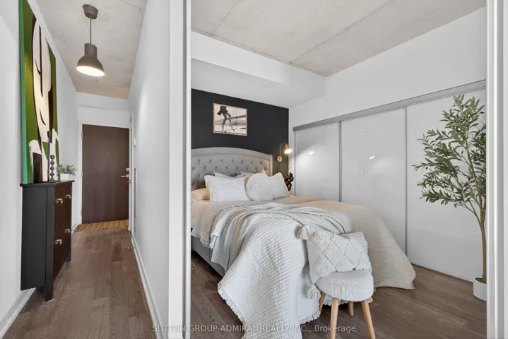 Well-designed one-bedroom suite at The Carlaw, featuring excellent finishes and abundant natural light throughout. Polished concrete ceilings create a true loft-style feel, complemented by a modern open-concept living, dining, and kitchen space with integrated appliances. The spacious bedroom offers a large closet, providing both comfort and functionality. Step onto the oversized balcony complete with a BBQ gas line-perfect for entertaining or relaxing outdoors. Enjoy fantastic building amenities including a party room, fully equipped gym, theatre, visitor parking, and guest suites. Ideally located just steps to Queen Street East, the Danforth, transit, the lake, and the Beaches-offering the best of vibrant city living right at your door step. A long-term parking spot is also available for rent at $150/month, providing added convenience in this sought-after neighbourhood.