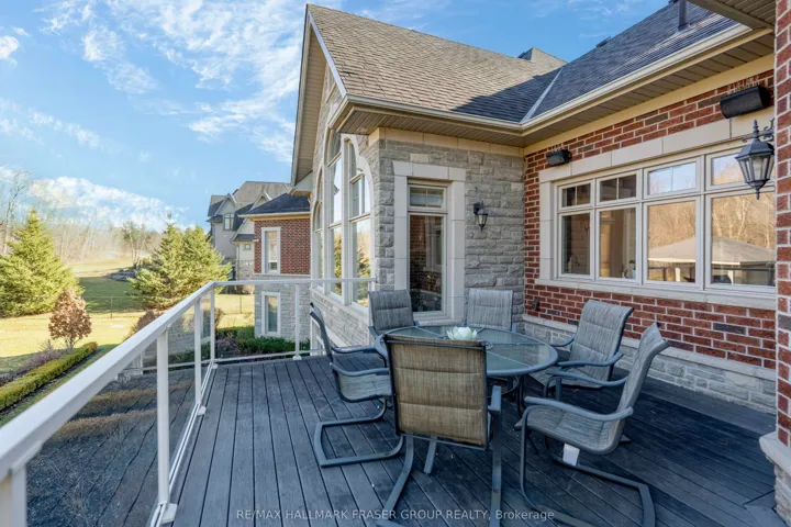 Set within the prestigious Barclay Fieldstone Estates enclave, 3335 Hollywood Crt is a rare custom bungalow on approximately 1.5 acres, backing onto forest and quietly positioned among estate-calibre homes, ravine, and mature trees in one of north Pickering’s most coveted pockets. With 5,000+ sq ft of finished living space, the home balances architectural scale, everyday comfort, and entertaining potential, all within minutes of major highways and daily amenities. Deer Creek Golf Club is nearby, while Rouge National Urban Park, Pickering Village, and Durham Live bring together nature, dining, and entertainment in a way that makes this location feel both established and forward-moving. The arrival experience is immediate. A 12-ft foyer introduces soaring interiors, dramatic window lines, and rooms that feel both expansive and intimate. The living room rises beneath a 15-ft vaulted ceiling, framed by a striking wall of floor-to-ceiling Palladian windows. Natural light moves beautifully through the principal rooms, while the 20-ft double-height breakfast area brings volume and presence to the heart of the home. Hardwood flooring extends throughout, complemented by select stone and tile finishes chosen with purpose. Designed for flexibility as much as beauty, the home offers 5 bedrooms. The walk-out lower level functions as a true extension of the home, a second kitchen with built-in gas cooktop, generous living areas, and spa-inspired bathrooms with steam shower. The layout suits multigenerational living, extended guest stays, or evolving family needs with ease. The grounds feel closer to a private resort than a backyard. Framed by landscaping and estate privacy, they feature a gunite inground pool, cascading waterfall, gas firepits, elegant lighting, and a cabana with outdoor gas BBQ and stove. It is a setting built for summer entertaining, quiet evenings outdoors, and day-to-day enjoyment on a scale increasingly rare in the GTA.
