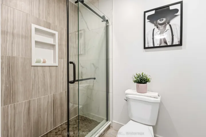 Beautiful Roybrook-built Brooklin townhome offering 3 bedrooms, 4 full bathrooms, and a rare opportunity to operate a home-based culinary business from the fully converted, Dine Safe-approved garage. This impressive space features epoxy flooring, a full kitchen with a professional-grade stainless steel sink, gas stove, and ample pantry storage. Inside, the home is loaded with upgrades, including luxury vinyl plank flooring, a hardwood staircase, upgraded lighting, extensive wainscoting, garage access, and the convenience of a full bathroom on every level. The gorgeous open-concept main floor features wide door entries and an upgraded kitchen with quartz countertops, a large breakfast bar, stylish backsplash, elegant pendant lighting, and stainless steel appliances. The dining area offers a garden door walkout to an entertainer’s patio, garden shed, and private fully fenced backyard. The family room is warm and inviting, complete with a cozy corner gas fireplace and peaceful backyard views. Upstairs, you’ll find 3 generously sized bedrooms, including a spacious primary retreat with a walk-in closet and a 3-piece ensuite featuring a quartz vanity. The fully finished, permitted basement adds exceptional living space with a rec room featuring an electric fireplace and epoxy floors, a kitchenette, a 3-piece bathroom, and a laundry area with glass barn door access. A minimal POTL fee covers water, garbage and snow removal. Ideally located just steps to groceries, Shoppers Drug Mart, downtown Brooklin shops, and convenient Highway 407 access for commuters!