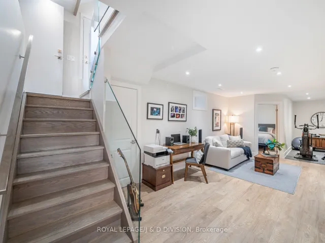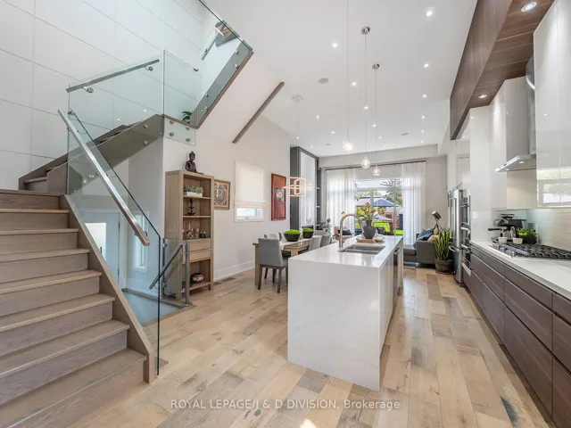 Built in 2019, this bright, modern detached home in Woodbine/Lumsden offers a seamless blend of space, light, and contemporary design. Sunlight pours through oversized windows, ceilings soar above, and each room flows effortlessly into the next. An elevated family room overlooks the open-concept kitchen, dining, and living spaces below – creating a layout that feels both connected and distinct. The kitchen is thoughtfully designed with a large waterfall-edged island, sleek cabinetry, and ample workspace, making it as functional as it is inviting. Just beyond, the living room is a natural place to unwind or entertain, centered around a stunning fireplace feature wall and with easy access to the backyard through sliding glass doors. Upstairs, the primary suite offers a calm retreat, complete with a walk-in closet and a spa-inspired ensuite. Two additional bedrooms and a well-appointed bathroom with double sinks provide flexibility, while second-floor laundry adds everyday convenience. The lower level expands the living space with a generous recreation room and two additional rooms – ideal for guests, a home office, fitness, or creative use as your needs evolve. Outside, the home continues to impress with a private drive and built-in garage, landscaped front yard, and a deep backyard featuring an elevated deck, patio, and a quiet tucked-away corner for relaxing. Located near Stan Wadlow Park, Taylor Creek, and scenic ravine trails, and just moments to the shops, cafés, and transit along the Danforth, this home offers a well-rounded lifestyle in a connected east-end community.