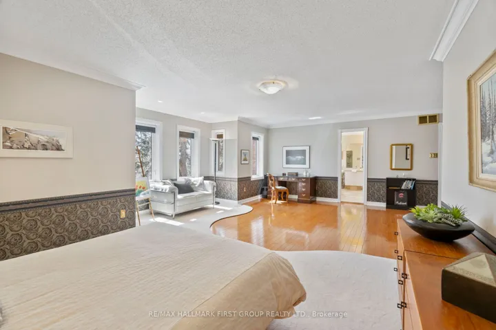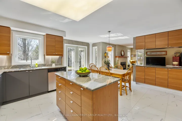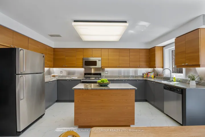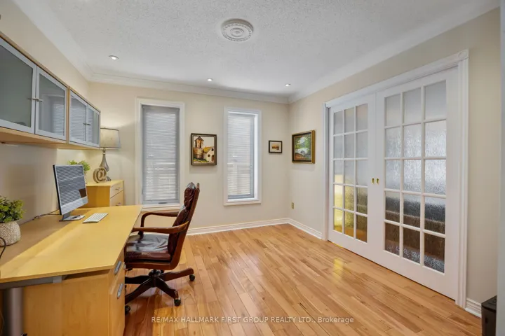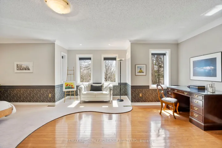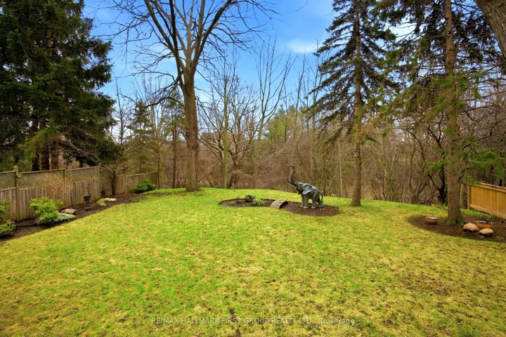 Nestled in one of Whitby’s most coveted, established enclaves-Queen’s Common-this exceptional residence offers an elegant blend of timeless design, refined updates, and a breathtaking ravine setting. Moments to parks, top-rated schools, trails, shops, dining, transit, and seamless access to Hwy 401 and 412. Set on a premium pie-shaped lot with Western exposure, this home backs onto a tranquil wooded ravine, creating a private, resort-like backdrop. A stone walkway leads to a welcoming covered porch and striking leaded glass entry. A grand foyer with porcelain flooring and a sweeping staircase sets the tone for the home’s sophisticated interiors. Thoughtfully designed, the main level features a separate living room with hardwood floors and elegant pocket French doors opening to a private office-ideal for working from home or easily converted to a main floor suite. A beautifully appointed 4-piece bath with walk-in whirlpool tub and hand-held shower adds both comfort and convenience. The formal dining room is perfect for hosting, while the renovated cherry kitchen is a true showpiece, complete with granite countertops, stainless steel backsplash, centre island, under-cabinet lighting, soft-close cabinetry, and premium stainless steel appliances including a gas range. The sun-filled breakfast area overlooks the ravine and offers a walk-out to an expansive two-tiered deck with pergola, flagstone patio, and landscaped gardens framed by mature trees. The kitchen seamlessly opens to a warm and inviting family room anchored by a gas fireplace-ideal for everyday living and entertaining. Main floor laundry with direct garage access adds practicality. Upstairs, the spacious primary retreat features a walk-in closet and a beautifully renovated spa-inspired 5-piece ensuite with freestanding tub, glass shower, quartz counters, and double vanities. Generous secondary bedrooms and an updated main bath with double sinks, quartz counters and walk-in shower complete the upper level.