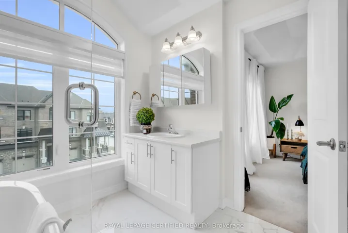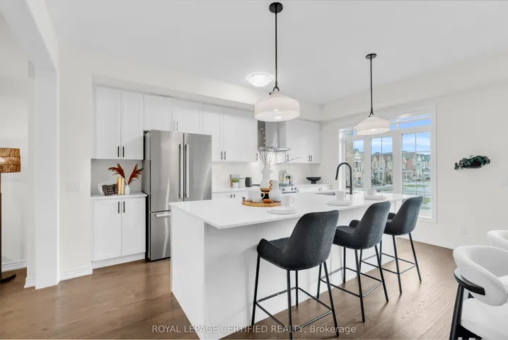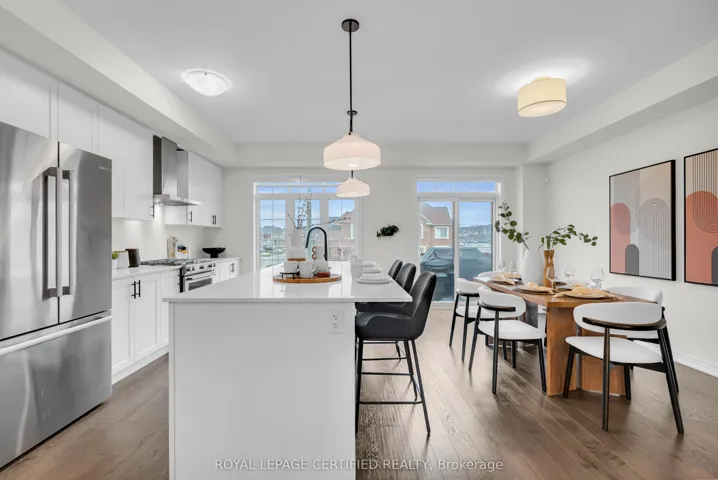 Gorgeous Freehold Executive Townhome in Rural Whitby community, built by the prestigious Heathwood Homes. This stunning residence offers over $50,000 in premium upgrades, Featuring approximately 1,957sq. ft. above grade plus ~290 sq. ft. of unfinished basement space, Boasting 3 spacious bedrooms and 2.5 beautifully finished bathrooms, every detail has been thoughtfully designed. The main level is an entertainer’s dream with 9-ft ceilings, upgraded hardwood flooring, pot lights, and modern light fixtures throughout. The gourmet kitchen has a custom 9-ft quartz island, high-end Kitchen Aid/Bosch appliances including a gas stove, and built-in pull-out storage for added convenience. The living room showcases waffle ceilings with integrated lighting, a gas fireplace, and a large window that fills the space with natural light. The open-concept dining area walks out to a private deck. Upstairs, the luxurious primary retreat featuring tray ceilings, a walk-in closet, and a spa-inspired 5-piece ensuite with herringbone tiled glass shower, porcelain tile, and a soaker tub. Two additional generously sized bedrooms and a convenient second-floor laundry room complete the level. The walk-out lower level offers a multi-purpose area for a family room, home office, guest space, or play area. The unfinished basement waits your final touches to customize to your needs. AAA location close to schools, parks, and everyday amenities, with quick access to Highways 401, 407, and412. Minutes to major retailers including Walmart and Costco. A rare opportunity to own a turn key, upgraded home in a prime family-friendly neighbourhood