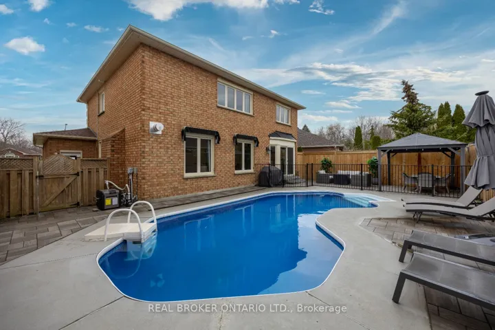 Move-in-ready and beautifully maintained, this 4+1 bedroom, all brick, two storey home is set in a desirable Courtice neighbourhood close to schools, parks, and everyday amenities. Offering excellent curb appeal, the home features a double car garage, a charming walkway, and a covered front porch that welcomes you inside. Step into the impressive foyer with hardwood flooring and a soaring approx. 17-foot ceiling that creates a bright and inviting first impression. The main floor offers a functional layout with a kitchen featuring tile flooring, backsplash, pantry cupboard wall, pot lighting, granite countertops, and a breakfast bar. The kitchen overlooks the breakfast area with crown moulding, large windows, and a walk-out to the patio. A formal dining room with hardwood flooring and crown moulding is filled with natural light, while the living room showcases hardwood floors, pot lighting, large windows with views of the backyard and pool, and an elegant stone fireplace feature wall. A convenient 2pc bathroom and a laundry room, with access to the garage, complete the main floor. Upstairs, the primary bedroom is a true retreat that is set behind double doors and finished with hardwood flooring, a walk-in closet with organizers, and a 4pc ensuite featuring a relaxing soaker tub. Three additional bedrooms are generously sized, each with hardwood flooring and large windows that keep the upper level bright and inviting. The finished basement is a bonus of this home, offering a versatile rec room with a gas fireplace set in a striking stone wall, a wet bar for easy entertaining, a 3-piece bathroom, and a fifth bedroom with an above-grade window that is ideal for guests, extended family, or a private workspace. Step outside to your own backyard escape. Fully fenced for privacy, this outdoor space is designed for entertaining with a patio area and an enclosed, heated, in-ground pool.