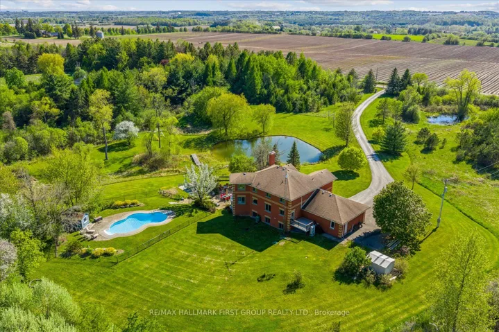 Welcome to refined country living on 15 acres of private, picturesque countryside in rural Pickering. This custom-built 4-bedroom estate offers nearly 6,000 sq ft of thoughtfully designed living space, blending warmth, comfort, and timeless luxury-just minutes from modern conveniences. The main floor is designed for both everyday living and effortless entertaining, featuring hardwood floors, expansive windows, and sweeping views of the surrounding landscape. The dining area is warm and inviting, while the chef-inspired kitchen boasts built-in double ovens, a gas cooktop on the centre island, and seamless flow into the sunken living room. A wood-burning fireplace anchors the space, creating a cozy yet elevated atmosphere. A private main-floor office with custom built-ins provides the perfect work-from-home retreat. Upstairs, the primary suite is a private escape, complete with a walk-in closet, spa-like ensuite with soaker tub and separate shower, and a walkout to a private balcony overlooking the fully stocked trout pond. Three additional bedrooms offer generous space for family, guests, or flexible use. The full walk-out basement extends the living space with a large recreation area, sound-proof media room, kitchenette, and access to a bright glass-enclosed sunroom-ideal for year-round enjoyment. Notable upgrades include a new high-efficiency heat pump, all new high-end Energy Star windows in a custom colour, stained fibreglass entry door system, garden doors, and retractable Mirage screens. The outdoor setting is beyond impressive, featuring an in-ground pool, Arctic Spa hot tub, electronic gated entry with outdoor lighting, apple trees, a fully stocked trout pond, and acres of open space to explore. Peaceful and private, yet only 7 minutes to the 407.A rare opportunity to enjoy space, privacy, and lifestyle-without compromise.