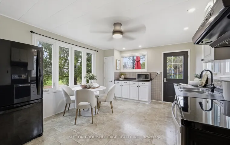 Tucked away on a beautiful 94 x 143 ft lot in charming Port Perry, this cozy, quaint bungalow blends rustic warmth with tasteful updates-just steps to historic downtown, the waterfront, parks, trails, shops, and restaurants. Sun-filled living and dining areas showcase a large picture window with peaceful western views, creating an inviting, country-inspired feel. The main level features a spacious entry, 3 comfortable bedrooms, and an updated 2-piece bath with classic touches. The warm, welcoming kitchen offers white cabinetry, black countertops, pantry storage along with a walkout to a private two-tier deck overlooking a serene backyard. The finished lower level adds flexibility with a cozy rec room, salon with above-grade window, 2 additional bedrooms, workshop, and ample storage.