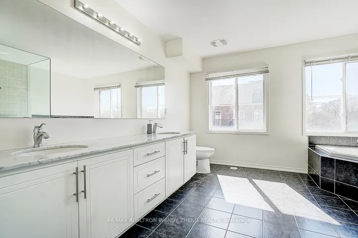 Stunning sun-drenched rare end-unit corner home in the highly sought-after Warden Woods community, backing onto the serene Firvalley Woods forest. This spacious layout features 3 luxurious king-sized Bedrooms with newer floor. Tastefully upgraded throughout with hardwood flooring, upgraded stairs and railings, pot lights, granite kitchen counters, stainless steel appliances, and a stylish glass tile backsplash. Cozy gas fireplace in the living area. The primary ensuite offers a spa-like experience with a glass shower, deep soaker tub, double sinks, and elegant marble counters. Gas line on deck for BBQ. Recent updates include: ventilation system motor (2026), air conditioning (2023), flooring in three bedrooms (2023), and roof (2024). Conveniently located close to schools, shopping, transit, hospital, and all essential amenities. Hot water tank is rented through Reliance (approx. $50.13/month incl. tax, billed quarterly). Snow removal approx. $57/month. Ample additional parking available nearby at a nominal fee.