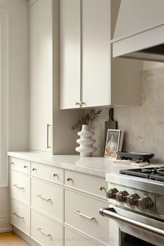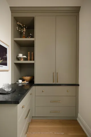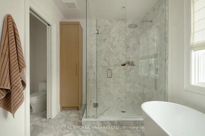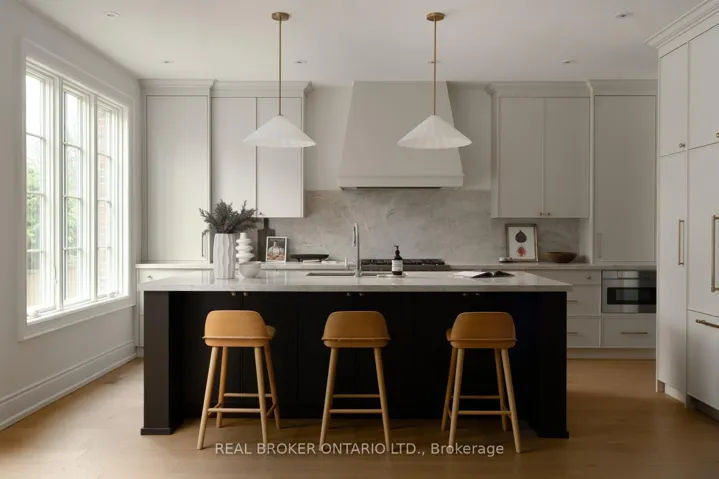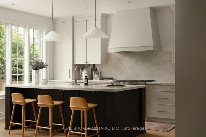 Welcome to 16 Glenshaw Crescent, nestled in the serene enclave of Parkview Hills. This stunning custom-built home sits on a rare 40′ x 147′ ravine-backed lot along a peaceful, tree-lined street. Offering over 5,000 sq ft of thoughtfully designed living space, the home showcases premium materials and exceptional craftsmanship throughout. A timeless red brick façade leads to a grand foyer featuring a striking black-and-white marble checkerboard floor, while extensive custom white oak millwork, and white oak hardwood floors throughout, adds warmth and sophistication. Blending classic elegance with modern comfort, this home delivers beautifully curated transitional finishes. The sun-filled main floor is designed for both everyday living and entertaining, featuring an office with built-in white oak shelving, a powder room, and a formal dining room with elegant wainscoting. The spacious living room, complete with custom built-ins and a gas fireplace, flows seamlessly into the chef’s kitchen, which boasts a large island, premium appliances, and an enviable butler’s pantry with arched pass-throughs connecting to the dining room. Upstairs, you’ll find four generously sized bedrooms, each with its own ensuite and custom closets, along with a convenient second-floor laundry room. The serene primary suite overlooks the backyard and ravine, and features a luxurious five-piece ensuite with a separate vanity and a spacious walk-in closet. The lower level, complete with heated floors throughout, offers incredible versatility with an expansive recreation room, gym, large bedroom, two washrooms, and a rough-in for a kitchen or additional laundry-ideal for a nanny, in-law, or guest suite. Outside, the professionally landscaped grounds include a beautiful interlock stone driveway and rear patio, while still providing ample green space to enjoy the natural ravine setting. This truly beautiful and meticulously crafted home awaits you!