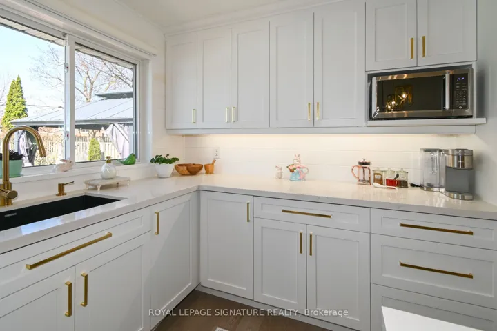 Welcome to this beautifully updated bungalow; this is a show stopper! Nestled on a spacious lot in a desirable neighbourhood, this home offers comfort, style & convenience all in one. Step inside to a beautiful, open living space featuring a modern custom, farmhouse style kitchen complete with a large 7 foot island, quartz counters, a custom hood vent & gas stove, custom blinds. The attention to detail is unmistakable. Look out from your kitchen window into a treed, landscaped yard, complete with a gazebo, deck, fire table and more… this is a beautiful green canopy with dedicated entertaining spaces. The perennial plants are a gardener’s delight! Current owner converted 3 bedrooms to 2 for comfort and lofty space on the main floor. The entrance to the basement leads to a generous family room, with a Napoleon fireplace, a pretty bathroom (3 pcs), and another room that can be a bedroom. The basement is perfect for movie nights, extra living space, or a potential in-law suite. Enjoy a tranquil lifestyle while remaining close to local amenities, parks, and schools. For savvy, forward-thinking buyers, an accessory dwelling unit (ADU) potential may exist, subject to compliance with the accessory building provisions in Zoning By-law 60-94. “A Thousand Welcomes” greets you the moment you enter. A home like this doesn’t come to the market often.