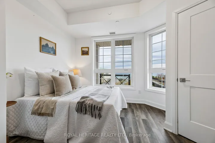Welcome To This Beautifully Maintained 2-Bedroom, 2-Bathroom Condo Ideally Situated Just Steps From The Shoreline And Within Easy Reach Of Amenities. Enjoy Serene Views Of Lake Ontario From Your Private Balcony-A Tranquil Retreat Where The Gentle Shimmer Of The Water Sets The Tone For Your Day. It’s The Perfect Place To Savour A Quiet Morning Coffee As The Sun Rises Over The Horizon, Or To Relax And Unwind In The Evening While The Sky Reflects Beautifully Across The Lake. Open-Concept Layout Is Both Functional And Comfortable W/ 9ft Ceilings & Modern Finishes Throughout. The Kitchen Features Many Upgrades, Ample Cabinetry, And A Convenient Breakfast Bar, Flowing Seamlessly Into The Bright Living And Dining Area. Both Bedrooms Are Generously Sized, Offering Flexibility For Guests, Family, Or A Home Office. Two Full Size Bathrooms Provide Added Convenience For Everyday Living. Residents Enjoy Exclusive Access To The Admiral Club, Offering A Full Suite Of Amenities Including A Fitness Centre, Indoor Pool, Theatre Room, Library, Party Room & Steam Room. Additional Highlights Include In-Suite Laundry, Quality Flooring, And Close Proximity To Walking Trails, Parks, Shopping, And Transit. Ownership Includes A Private Storage Locker. Experience The Ease Of Condo Living In One Of The Area’s Most Desirable Lakeside Communities. Don’t Miss This Opportunity To Live In One Of The Area’s Most Desirable Lakeside Communities.