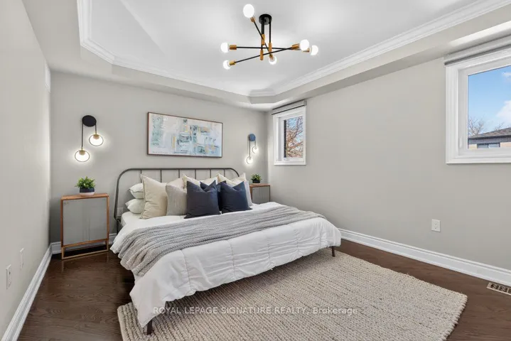 Nestled in the desirable Clairlea community, this elegant Bexhill residence showcases thoughtful design and exceptional craftsmanship throughout. Refined finishes include crown mouldings, LED lighting, rich hardwood flooring, and expansive windows that fill the home with natural light. The living room is both stylish and inviting, centred around a built-in gas fireplace set against a striking stone feature wall. A separate dining room offers an intimate setting for family meals and entertaining. The chef’s kitchen blends form and function with granite countertops, a centre island with seating for three, built-in stainless steel appliances, and dramatic floor-to-ceiling sliding doors that open to a spacious deck overlooking the landscaped backyard. The primary suite is a serene retreat featuring a vaulted ceiling, crown moulding, double closets, and a spa-inspired 5-piece ensuite with a double vanity and Jacuzzi tub. Two additional bedrooms share a well-appointed Jack & Jill 5-piece bathroom, ideal for family living. The fully finished lower level offers a bright, open-concept space with large above-grade windows and a walkout to the private, fenced backyard. The Basement includes a full washroom and can be used as a 4th bedroom or better yet, add a small kitchen to the laundry room and have a separate bachelor unit! Designed for ease and enjoyment, the backyard is finished with low-maintenance turf-perfect for outdoor entertaining and everyday living.