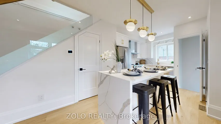 Beautifully updated detached home in the heart of the Danforth set on a desirable corner lot and offering a perfect blend of style comfort and modern upgrades. This 3+1 bedroom 3 bath residence features a bright well-designed layout along with a fully finished basement with separate entrance ideal for in-law or private living space. The contemporary kitchen is equipped with a sleek center island quartz countertops designer backsplash and newer appliances. Notable upgrades include a newly built detached garage with 100-amp panel (EV charger ready) upgraded 200-amp electrical service updated HVAC ducting engineered hardwood flooring on main and upper levels and pot lights throughout. Additional highlights include two sets of washer and dryer for added convenience a stylish slab-stone fireplace in the living area and a spacious approx. 300 sq. ft. deck perfect for outdoor entertaining. Situated in a family-friendly neighbourhood close to schools parks shopping and the vibrant Danforth with easy access to public transit for effortless commuting.