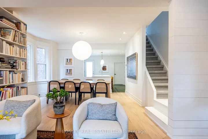 Stunning curb appeal sets the tone at 16 Mallon Ave, where exceptional landscape design creates a private & lush welcome. Step inside and you feel it immediately, an effortless blend of warmth and sophistication. The main floor is open, airy, and filled with natural light, a seamless flow for both everyday living and entertaining. Generous entry, white oak floors, exposed brick, a classic wood stove plus main floor powder room and laundry. At the heart of the home, the chef’s kitchen is an epicurean delight. Featuring quartz countertops, abundant storage, generous prep space, and stainless steel appliances, including a gas range. Whether it’s slow mornings at the breakfast bar, homework or work from home, or lively gatherings with friends and family, this is a kitchen that truly brings people together. Walk out to an incredible, professionally designed garden, perfect for relaxing, hosting, and enjoying the seasons. Garage parking off Dundas offers everyday ease, with exciting potential for a future laneway suite. Upstairs, the primary bedroom is a restful retreat with wall-to-wall closets. Two additional bedrooms are bright and generously sized, complemented by a beautifully appointed full bathroom, comfort without compromise. The lower level offers a cozy, hygge-inspired space ideal for movie nights and family time. With a separate entrance and 4-piece bathroom, it provides excellent flexibility for guests, in-laws, home office, or income potential. Set on a friendly, community-oriented street in the heart of Leslieville, this home pairs thoughtful updates with timeless appeal. A welcoming front porch, meaningful improvements, and a sense of care throughout.