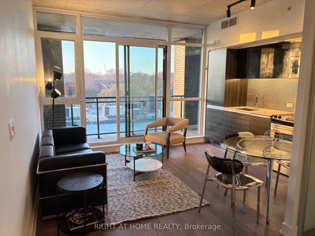 Welcome To The Carlaw Located In Leslieville. This Beautiful 1 Bedroom 1 Bathroom Unit Is North Facing With 9′ Exposed Concrete Ceilings, Large Floor To Ceiling Windows For Ample Natural Sunlight And A Large Balcony. 1 Parking Spot And 1 Locker Included! Engineered Hardwood Floors, Quartz Counter Tops, Integrated Appliances, Gas BBQ Connection, Sliding Glass Doors, Custom Lighting, Primary Bedroom With Large Closet. This Location Is Steps Away From Fantastic Restaurants, Shops, Parks And TTC.