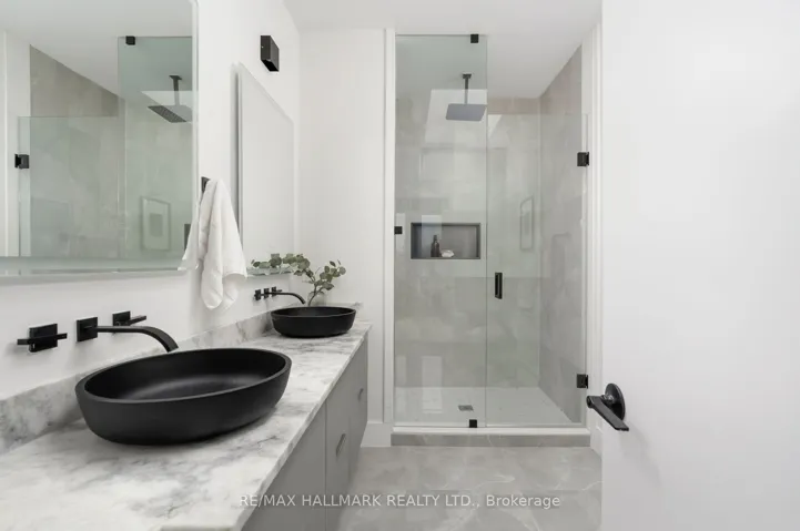 Welcome to this exquisite, thoughtfully designed 3-bed, 4.5-bath, 2-storey custom build home blending style, comfort & modern functionality. Nestled in the heart of East York on a deep 123-ft lot, this luxurious residence offers a B/I garage & tastefully finished living space, including a bright W/O basement. Designed with sophistication & exceptional craftsmanship throughout, the home showcases soaring ceilings, floor-to-ceiling windows, a floating staircase, glass railings, skylights & balconies that flood the space with natural light. The bright & functional main floor offers an open concept layout anchored by a sleek, chef-inspired kitchen complete with premium quartzite countertops, a center island, custom cabinetry & S/S appliances. A warm fireplace anchors the family rm, while the W/O to the deck extends the living space outdoors, ideal for everyday enjoyment. B/I speakers & powder room enhance both comfort & convenience on this level. Upstairs, natural light is a defining feature, enhanced by multiple skylights throughout. Three generously sized bedrooms, each with its own private ensuite, offering comfort & privacy. The primary suite features a luxurious 5PC ensuite, his-&-hers closets, & a W/O to a private balcony. It also includes a dedicated mini split AC & 1 air handler, ensuring optimal comfort in every season. The added convenience of upper-level laundry enhances everyday living. The basement offers a rec room featuring elegant flooring, a 3PC bath & W/O access to the backyard, ideal for extended family, guests, a home office, or gym. Step outside to enjoy the rear deck with a BBQ gas line, overlooking a spacious fenced backyard, perfect for hosting or relaxing. Steps from Aldwych Park, minutes to the DVP & Donlands Station make commuting effortless. This exceptional home offers a blend of craftsmanship, convenience & contemporary living, an outstanding opportunity in one of Toronto’s most desirable communities.