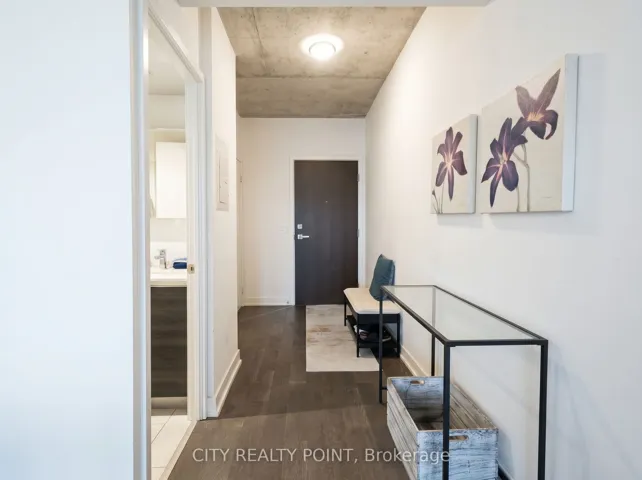 Welcome to The Carlaw, where authentic loft living meets the energy of Leslieville. Bright, spacious, and thoughtfully designed, this standout suite offers the perfect blend of style, function, and lifestyle in one of the city’s most sought-after addresses. Featuring a well-proportioned one-bedroom, one-bathroom layout, this home is defined by its 9-foot exposed concrete ceilings, expansive floor-to-ceiling windows throughout, and a sunlit north-facing balcony complete with a gas line-perfect for year-round BBQing and effortless entertaining. The open-concept design truly lives like a home, offering full-sized living and dining spaces ideal for hosting, relaxing, or working from home. The upgraded kitchen is both sleek and functional, showcasing quartz countertops, a large island with seating, extended cabinetry, and full-sized stainless steel appliances-all seamlessly integrated for a polished, modern feel. Hardwood flooring runs throughout, adding warmth and continuity to the space. Practicality meets convenience with in-suite laundry and a same-floor locker for easy everyday access. Residents of The Carlaw enjoy an exceptional lineup of amenities, including a rooftop terrace with sweeping city views, a fully equipped fitness centre, a stylish party room, and 24-hour concierge service. Step outside and immerse yourself in Leslieville’s vibrant community-just moments to Crows Theatre, the renowned Piano Piano, and an eclectic mix of cafes, boutiques, parks, and transit options. This is more than a condo-it’s a lifestyle. Stylish, connected, and effortlessly livable-welcome home.