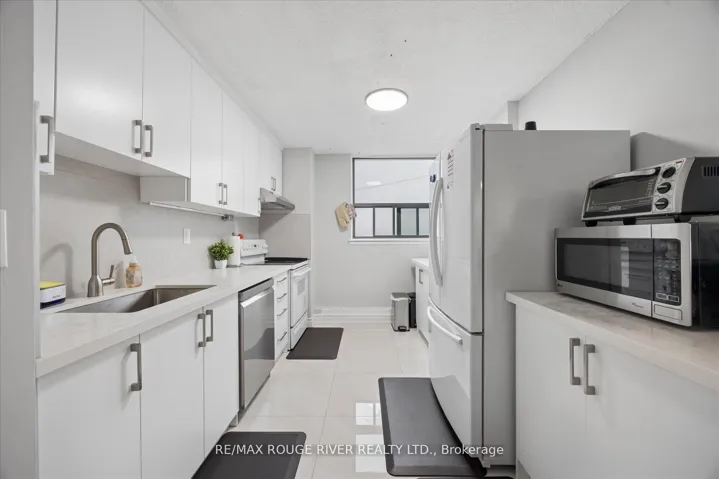 Why rent when you can own!!!! Welcome to this fresh, fabulous, spacious 2 bedroom, 2 bath Unit. Stunning new modern kitchen with loads of counter and storage space, quartz countertop, pot drawers, built-in dishwasher. Open, bright Living room with walk-out to Balcony; Separate Dining room (can be used as a Den or separate prayer room); great size bedrooms with lots of storage. Primary bedroom with His & Her closets and 2pc. ensuite. Ensuite laundry, with newer full size Washer & Dryer. Laminate flooring throughout. New Patio door and windows. Over 1000 sq. ft. including the Balcony. One owned underground parking space. Possible to rent an additional parking spot if needed. Close to all amenities, walk to school, Transit at the corner. Places of worship close by. Low Maintenance fee includes Heat, Hydro, Water. Low Taxes. Affordability and living space at its best. Truly a great place to call home!