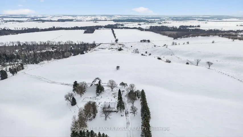 A Private Country Paradise. Welcome to this exceptional 104-acre farm estate offering the perfect blend of functionality, natural beauty, and refined country living. Whether you’re looking for a working farm, a private retreat, or a place to create lasting family memories, this meticulously maintained property delivers it all. Set back from the road you’ll arrive via a long, paved tree-lined driveway framed by a classic white fence, leading to a manicured lawn and beautifully landscaped flower gardens. The mixed-use land offers productive cash crop fields, forested trails for hiking or ATVing, a private pond, and ample open space for recreation or expansion. The charming 4-bedroom home features a metal roof, covered front porch ideal for relaxing summer evenings, inviting living room with fireplace and walk out to patio, large eat in kitchen, formal dining room great for entertaining and grand primary suite complete with a 4-piece ensuite, wall-to-wall closet, and walk-out to a large private balcony. Outside, enjoy the fully fenced in-ground pool for warm-weather fun, complete with tiki bar. A classic barn, and a detached 4-bay garage offer ample storage and workspace. Dual access to the property provides convenience and flexibility. Whether you’re seeking tranquility, an investment opportunity or a place to bring your rural dreams to life, this stunning property located close to the growing town of Alliston has it all. Don’t miss this rare opportunity to own a piece of countryside perfection.