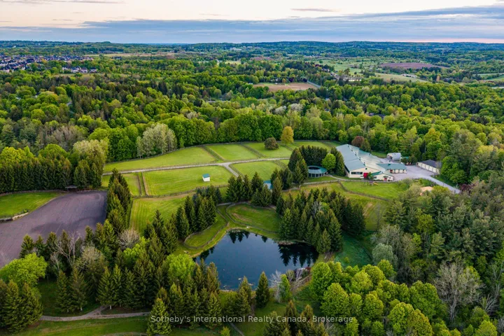 Family Compound; equestrian business; retreat; live and lease. So many options for one of the finest equestrian estates in Ontario’s renowned King Township; without question a premier community in the horse world. Wingberry Farms spans 75 acres of scenic, rolling land with open paddocks, mature forest, and private trails that lead past a stunning pond with waterfalls and up to the most enchanting hilltop log cabin where you can enjoy sweeping sunrise and sunset views. All of this only 45 minutes north of Toronto. The property includes three distinct homes: 1: The gate house (a newly built custom residence (2018) with 4+2 bedrooms and 7 bathrooms, nanny suite, oversized decks and private forested backyard with hot tub and fire pit, open concept living with a gym & theatre downstairs; 2: The main house-a timeless traditional with 4 bedrooms, multiple outdoor siting areas and outdoor kitchen, spectacular great room and indoor pool and spa amenities (2019), detached garage with apartment above; 3: A well-kept guest house with 4 bedrooms and a staff apartment below offering flexible space extended family, or rental income. Whether you’re an avid equestrian, investor, or both this property delivers. Equestrian infrastructure is top-tier: a 26-stall main barn, an additional 6-stall stable, Olympic style, heated indoor arena, sand ring, and grass grand prix ring with cross-country elements. Gorgeous trails lead you through the forest to a river and ponds. Multiple paddocks (three with run-in shelters) offer varied turn out options, while equipment and vehicle storage is more than covered, with a 5-bay garage and two large heated workshops discreetly positioned on the property. Private, yet ideally located, Wingberry Farms is a strategic acquisition in a region where large parcels are increasingly rare. Designated village reserve lands make this an interesting prospective land banking opportunity.