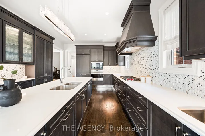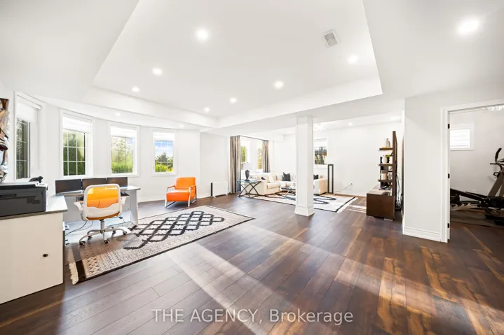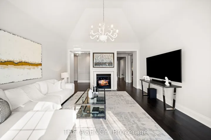 Located in the heart of King City, this beautiful bungaloft offers more than 6,900 square feet of finished living space in a community prized for its parks, trails, excellent schools, and quick access to the King City GO station. The home is introduced by a stone-and-stucco façade, a three-car garage, and landscaped grounds with a terrace and rear patio overlooking the ravine. Inside, soaring ceilings, hardwood floors, and detailed millwork set an elegant tone. The front foyer rises two storeys, leading to a series of principal rooms defined by coffered ceilings: a paneled office, a formal living and dining room, and a family room anchored by a gas fireplace. At the centre of the main level, the kitchen is fitted with dark-stained cabinetry, quartz counters, and a full suite of Wolf and Sub-Zero appliances. The adjoining breakfast area opens directly to the terrace. A main-floor primary suite with a spa-like ensuite and walk-in closet provides a private retreat, while a second bedroom with its own ensuite adds flexibility for family or guests. An elevator connects all three levels. The upper floor includes two additional bedrooms, a full bath, and a den well suited for children, extended family, or a separate study. The fully finished lower level is above grade, with oversized windows and French doors leading to the rear patio. This home includes total of 4 + 2 bed and 4 + 2 bath. Designed as a complete secondary living area, it includes a full kitchen with quartz counters and Samsung appliances, a dining area, a large recreation room with fireplaces, two bedrooms, and additional baths. This thoughtful layout makes the property especially accommodating for multi-generational living. Every detail of this residence reflects quality and enduring design, offering a rare opportunity in one of King City’s most desirable settings.