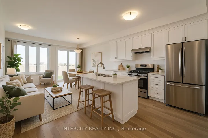 Brand-New Freehold Luxury Traditional 2-Storey Townhome. Built by a reputable builder Remington Homes. Beautiful Brick and Stone Exterior. Spacious well designed interior unit ” The Cardinal ” features 1,715 Sq. Ft. as per Builder’s Plans. 9′ ceilings on main and second floors. Granite counters in kitchen and washrooms. Hardwood on ground floor. Extra height kitchen cabinets plus kitchen island. Freestanding tub in primary ensuite. Finished Rec room in the basement with a 3-piece washroom for your convenience. Over $19K in upgrades (Level 2 upgrade kitchen cabinets, optional flash breakfast bar, upgraded hardwood on main floor including kitchen, upgraded stairs and pickets, oak basement stairs. This subdivision is next to Aaniin Community Centre, schools, major highways, transit routes, 2,000 km Nature Trails, gold clubs. Flexible closing available (30, 60, 90 days). The images have been virtually staged. Furnishings and décor have been digitally added and may not represent the actual property.