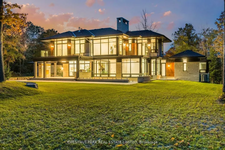 Over 11 acres – set in a premium location, on a highly coveted road in Uxbridge, this contemporary modern David Small Designs masterpiece was meticulously crafted with no expense spared. Newly constructed custom residence boasting 4+1 bedrooms & 6 bathrooms. The elegant facade features clean lines, organic textures, & expansive glass windows. Accentuated by rich wood tones & limestone detailing, this home blends beautifully into the breathtaking landscape. Upon entry, soaring ceilings & abundant natural light greet you. The gourmet kitchen & servery combine functionality with luxury. Two primary suites featuring walk-in closets, gas fireplaces, a 5-piece ensuite, & private outdoor space. 3 more bedrooms, each with an ensuite & walk-out to decks. The lower level offers an unparalleled entertaining experience featuring a fully equipped second kitchen, recreation room & access to the outdoors. This premier resort-like property provides seamless indoor/outdoor living. Both an entertainer’s dream & a private oasis, the outdoor space encompasses a large grassy yard & a stunning cabana, with a fireplace feature, an outdoor kitchen, & dining space. The estate promises leisure & luxury for friends, family, & party guests. The main house garage & second attached garage fit 5 cars. Only a 45-minute drive to Toronto, this residence stands as a testament to luxury living, seamlessly fusing technology, design, & comfort for an unparalleled living experience. **EXTRAS** Recreational options are boundless with cut trails throughout the entire property. The property backs onto lush conservation land and trails, enhancing its serene, countryside appeal. Minutes away is the vibrant community of Uxbridge.