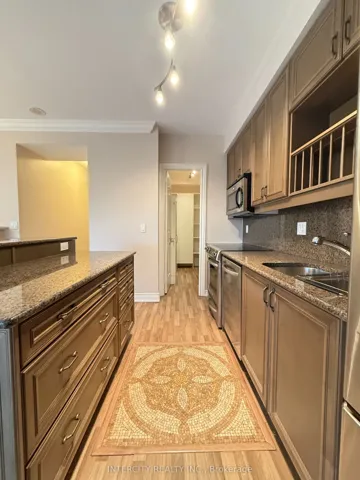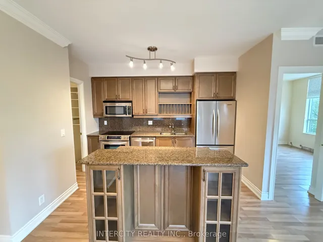 1,060 Sq. Ft. Prime South-East Corner Unit. Suite Overlooks Green Space. Smooth 9Ft Ceiling, Crown Moulding, Marble Fireplace. Kitchen with Ceramic Floor Insert, Granite Back Splash, Counters & Centre Island/Bar, Extended Upper Kitchen Cabinets, Pots & Pan Drawers. Lots Of Windows / Natural Light, Large Balcony. Walk-In Pantry.