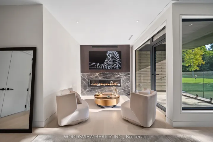 Step into your private oasis – where design becomes art and every detail tells a story. Set in one of York Region’s most coveted neighbourhoods, this is more than a home – it’s a statement. A bold fusion of architecture, elegance, and imagination, crafted to inspire.As you approach, a fully equipped carriage house and rolling landscapes set the tone. The winding drive leads to tranquility – where serenity and design converge in perfect harmony.The striking façade of stone and aluminum, and the weight of a solid door, opens to a grand interior of heated floors, bespoke millwork, and formal rooms that blend timeless elegance and the stillness of a perfectly balanced space. Every surface and finish has been refined to one standard: perfection without pretence. A sunken living room invites intimate connection, anchored by a 13-foot marble fireplace and floor-to-ceiling windows frame sweeping panoramic views, flooding the rooms with natural light.The kitchen, equipped with a full Miele suite, centres around a handcrafted brass-accented hood – a symbol of quiet strength and precision. The home’s rhythm flows effortlessly: private yet open, contemporary yet warm. Its 30-foot floating skeleton staircase – a one-of-one architectural sculpture – connects every level with breathtaking grace.The primary retreat is a sanctuary of calm, featuring a fireplace and gallery-style walk-in closet with custom millwork. The lower level, accessible by private elevator, is devoted to leisure – complete with a bar, media room, climate-controlled wine cellar, fitness studio, and guest suite. Outdoors, an expansive covered terrace with integrated sound overlooks eight acres of sculpted landscape framed by towering trees and complete privacy. This is more than a home; it is a living showcase of achievement, a reflection of everything you’ve built and everything you’ve become