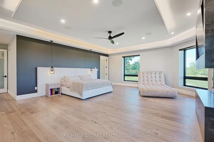 Welcome to this extraordinary custom-built luxury estate, a private hilltop retreat set on 36 acres of rolling countryside with breathtaking panoramic vistas. Offering 12,500 sq. ft. of exceptional living space, the home impresses from the moment you step inside. The great room boasts 20 ft soaring ceilings, a dramatic wood-burning fireplace, and a custom stone chimney. The gourmet chefs kitchen is a showpiece, featuring built-in Thermador appliances, an expansive gas range, beam ceilings, two oversized islands, and a seamless flow into the open-concept dining room, which walks out to a patio with an outdoor wood-burning fireplace. This rare property offers 8 spacious bedrooms, 8 bathrooms, including a main-floor primary suite with an indulgent 7-pc ensuite, heated floors, soaker tub, double rain shower, and a couples walk-through closet. Built with quality ICF construction, it showcases custom millwork and stonework throughout. Additional highlights include a 5-bay, 2500 sq. ft. attached garage w basement access, elevator, rough-in for a spa, large soundproof theatre room, and a rec room with walkout to the rear patio. The grounds blend natural beauty with functionality: mature trees, farmable acreage, landscaped gardens, and a private pond with dock, firepit, and a charming outbuilding. Completing the property is a fully operational 5,000 sq. ft. workshop with office space, and including a 4,000 sq. ft. in-law suite ideal for multigenerational living, a home-based business, or the passionate hobbyist. This is luxury living without compromise. Property Tax have not been assessed.