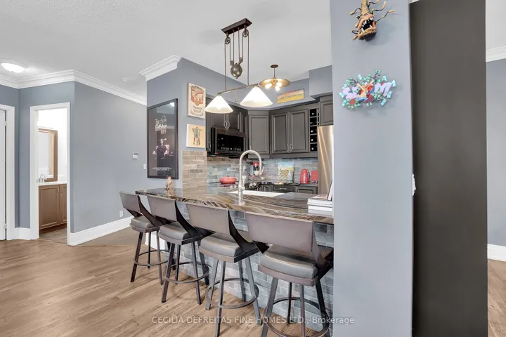 Completely reinvented with $150,000+ in custom upgrades, this exceptionally spacious condo blends bold personality with modern refinement. Sun-filled and wonderfully open, the home features a smart split-bedroom floor plan for privacy and flow. The deep navy bedroom offers a beautifully balanced, grounding presence-creating a serene haven that feels both soulful and peaceful.The living area bursts with character, featuring strong, eye-catching colours that instantly elevate the space. Thoughtfully designed lighting highlights every detail, creating a warm and uplifting atmosphere ideal for gatherings or quiet evenings at home. Incredible condo living ideally located in a prestigious gated community, with 24 hr. concierge services, easy access to highways, public transit, fine dining, Vaughan Mills, Canada’s Wonderland.