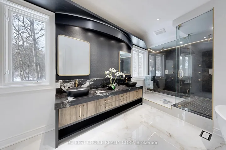 Exceptional estate residence located in the prestigious Woodland Acres community of Vaughan, situated on approximately 1.73 acres of private, landscaped grounds surrounded by mature greenery. Designed for both comfortable living and entertaining, the home features an indoor swimming pool, basement home theatre, and multiple walkouts to outdoor living spaces. Custom gourmet kitchen with high-gloss wood cabinetry, black granite countertops, and premium built-in appliances including Sub-Zero refrigerator, gas cooktop, Dacor wall oven, built-in microwave, and integrated dishwasher. Additional features include a private tennis court, hot tub, designer lighting, custom window coverings, California shutters, and complete pool equipment. A rare opportunity offering privacy, luxury amenities, and a resort-style setting in a sought-after enclave.