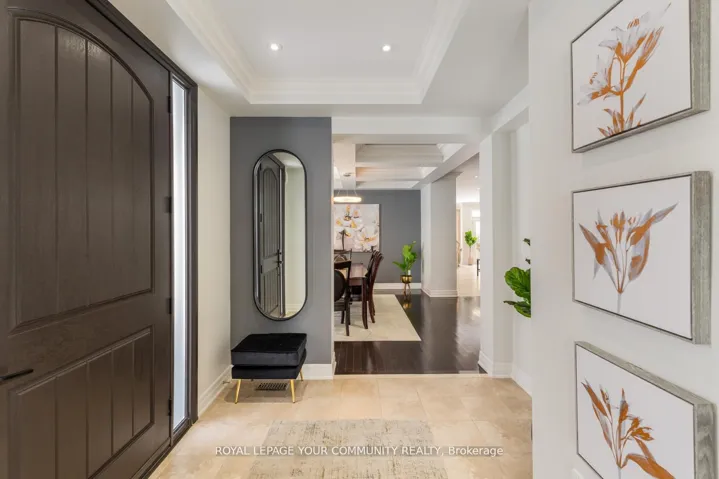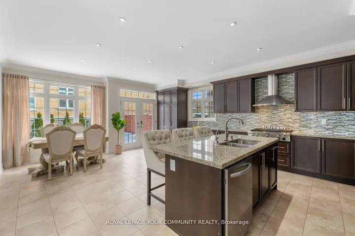 Nestled in the heart of King City, this home exemplifies quality living, offering both convenience and safety in a vibrant community. Positioned on a spacious corner lot and overlooking a serene park, this elegant residence spans over 3,700 square feet above grade,designed to accommodate the needs of modern families with expansive living spaces.Upon entering, you’ll be welcomed by the grandeur of high ceilings and an open layout, highlighting exquisite finishes such as hardwood floors, large custom windows with coverings, crown moldings, and contemporary lighting throughout.The main floor features a generous living room with park views, providing a sense of privacy, and a formal dining room enhanced with coffered ceilings and elegant moldings. A private office with French doors and intricate ceiling details offers a refined work environment. The two-story family room, complete with a cozy fireplace, flows seamlessly into the kitchen and breakfast area. The chefs kitchen is a standout, boasting abundant cabinetry, granite countertops, top-of-the-line stainless steel appliances, a water filtration system, and a garburator. The breakfast area includes additional cabinetry with a built-in desk, and opens onto a beautifully landscaped French patio with a gas hook-up for a BBQ and a lush garden. The laundry room, equipped with high-end appliances and built-in closet storage, offers convenient access to the garage.Upstairs, the second floor features four spacious bedrooms. The primary suite is a private retreat,featuring high ceilings, a Juliet balcony, a custom walk-in closet, and a luxurious five-piece ensuite. Two additional bedrooms are fitted with double closets and large windows, sharing a five-piece semi-ensuite. The final bedroom offers a private four-piece ensuite, walk-in closet, and cathedral ceiling.The basement offers high ceilings, a cold room, and the potential for a walk-up exit, should your familys needs require.