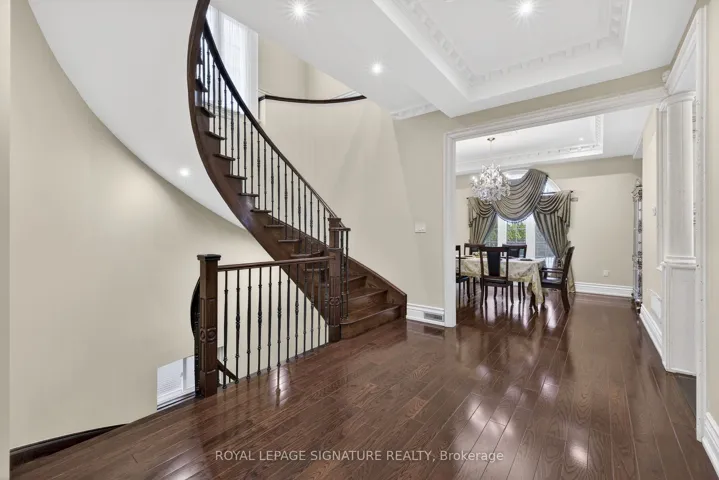 An Exquisite Custom-Built Estate Showcasing Exceptional Craftsmanship And Meticulous Attention To Detail Throughout. Nestled Within Markham’s Most Prestigious Custom Estate Enclave, This Remarkable Residence Offers 5+1 Bedrooms and 8 Bathrooms Spanning Over 5,000 sq. ft. Of Impeccably Finished Living Space, Blending Timeless Elegance With Premium Materials. The Striking Limestone Exterior And Luxury Windows Set The Tone, Complemented By A Stamped Concrete Driveway And An Impressive 3-Car Garage. Soaring 10- And 16-Foot Ceilings On The Main Level And 9-Foot Ceilings In The Professionally Finished Basement Create A Grand Sense Of Scale. Rich Hardwood Flooring, Detailed Crown Mouldings, And Thoughtfully Placed Pot Lights Enhance The Refined Interiors, While A Dramatic Oversized Skylight Floods The Home With Natural Light. The Gourmet Kitchen Is Beautifully Appointed With Luxurious Stone Countertops And Flooring, Designed For Both Elegance And Function. A Magnificent Grand Circular Staircase Anchors The Home, Rising From An Impressive Front Foyer That Leaves A Lasting First Impression. The Exquisitely Finished Lower Level Offers A Private Sauna, Creating A Spa-Inspired Retreat Within The Home.