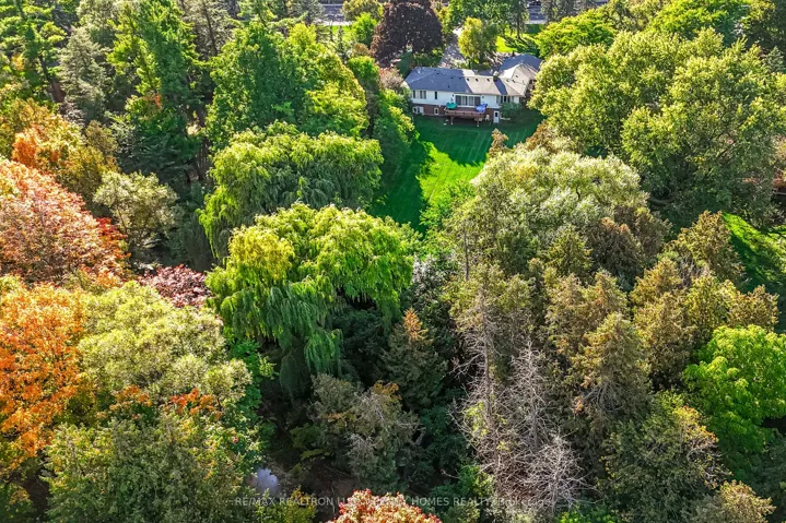 Spectacular bungalow on a rare 1.016 acre lot overlooking a ravine and creek. This inviting retreat blends nature and convenience with quick access to Hwy 407 and Hwy 404. Sun filled main level features hardwood in most rooms, generous principal spaces, and an updated kitchen with abundant cabinetry and prep space that flows to the dining and living areas. Large windows frame green views and draw natural light across the home, showcase of the living room walkout to the deck overlooking the flat table land of the park feel backyard. 3 bedrooms appointing the master bedroom with 5pc ensuite. The finished walk up basement significantly expands the living area with a wet bar, multiple recreation zones with gas fireplace, well suited for movie nights, a home gym, playroom, or guests. Additional 2 spacious bedrooms. Separate walk up provides easy access to the yard. Convenient laundry on both levels with two washers and two dryers, one set on the main level and another in the basement. Practical upgrades include waterproofing and drainage that help keep the house and basement dry, a septic system serviced annually with upgraded piping, and two sump pumps. Ample electrical capacity with 200 amp service in the garage and 100 amp service to the backyard supports workshop use and future outdoor projects.Expansive grounds offer room for gardens, play space, and quiet evenings by the trees. A rare blend of nature, comfort, and convenience.