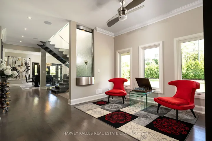 Experience luxury living at Bellevue Mansion, ideal for families seeking elegance and convenience. Nestled in a prestigious community on a private gated corner lot, this property offers unmatched privacy and sweeping views of Oakbank Pond Park. This home features five spacious bedrooms, including a main-floor primary suite, and six luxurious bathrooms across 5,500 square feet. The interiors are complete with a refined Italian kitchen with high-end appliances and expansive entertaining spaces. The serene, retreat-like surroundings include meticulously landscaped gardens. Modern amenities include smart home integrations, coloured LED ambiance, full-house Bose surround sound, heated floors, fireplaces, and large windows throughout that fill the home with natural light. Exemplifying luxury living even further with lavish amenities such as a separate private office with a balcony overlooking gorgeous sunsets over the pond, a meditation enclave, a walk-in wine cellar, a heated garage, an outdoor kitchen, a games lounge with a bar, and a spa-inspired gym with a rejuvenating sauna. This residence is not just a home; it is a lifestyle statement in one of Toronto’s prime locations.