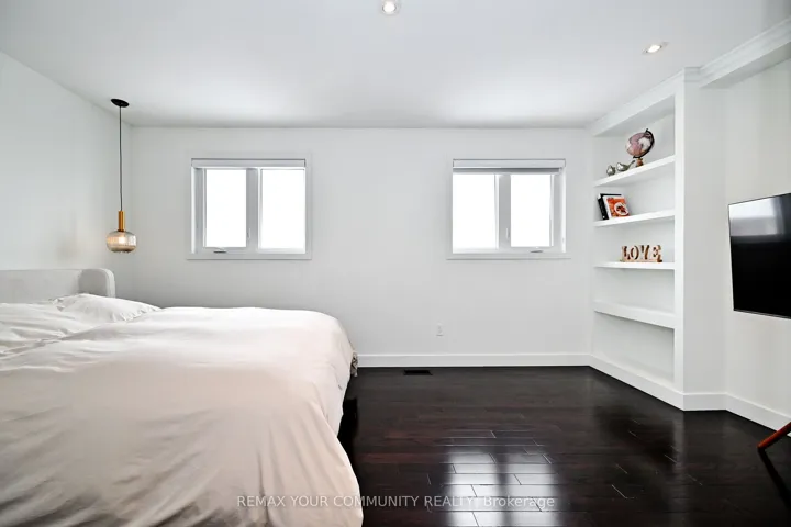 Executive designer dream home in Dufferin Hills, linked only by the garage, similar to a semi-detached property. Features a garage with access to the backyard and home, plus an extended driveway with no sidewalk that fits up to four cars. The modern eat-in kitchen includes wainscoting, custom seating, quartz countertops, stainless steel appliances, and a walk-out to a fully fenced backyard. Hardwood floors run throughout the main and second floors. The primary bedroom features a private ensuite bathroom. The finished basement offers a media and entertainment room, complemented by LED pot lights throughout. Ideally located just 1 minute from Forest Run Public School, 3 minutes from Stephen Lewis Secondary School, and minutes to Highway 407, Rutherford GO Station, parks, public transit, grocery stores, restaurants, pharmacies, banks, shopping, and more.