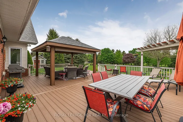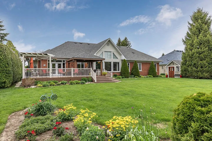 Welcome to a stylish and meticulously maintained 2568sf bungalow with cathedral ceiling grand dining room, approximately 3/4 acre lusciously landscaped private property, 3 car garage and partially finished basement that is nestled in the desirable and prestigious enclave of Ballantrae. It is conveniently located within minutes to Go Train, big box stores, and all amenities. This thoughtfully designed floor plan presents a seamless flow for entertaining that is complimented with spectacular panoramic views of the breathtaking manicured property. The modern kitchen with spacious breakfast area boasts floor to ceiling windows and overlooks the huge great room with fireplace and south facing back yard. The spacious welcoming attractive foyer accesses the striking cathedral ceiling dining room and large main floor office with fireplace. Three of the bedrooms are conveniently located on the main floor in the separate, private east wing. The primary bedroom offers a walk-in closet and 4pc bath with the two additional main floor bedrooms sharing a Jack and Jill ensuite. The mostly finished basement presents an expansive recreational room with seating, games and exercise areas, oversized fourth bedroom with large 3pc bath and lots of potential for further customization. The outdoor area is equally impressive and is highlighted by a spectacular and enormous non-maintenance deck. The south facing outdoor oasis includes a covered gazebo, huge dining area and separate sitting areas and is complemented by expansive views of manicured gardens and lush green trees. Wow a modern bungalow on a large private luscious lot in a prestigious area. A must see!