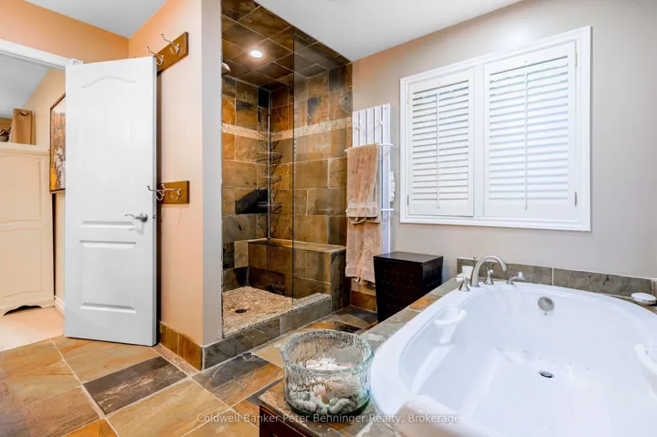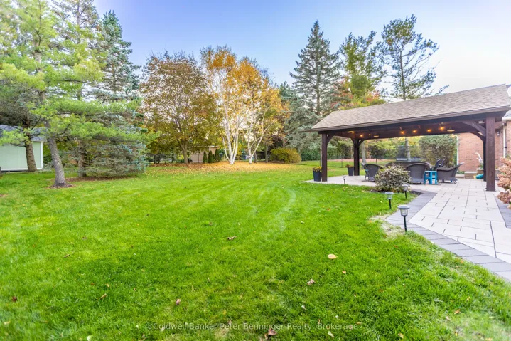 Welcome to 152 Treegrove Circle, located in the heart of St. Andrews on the Hill – one of Aurora’s most desirable neighborhoods. Treegrove circle is an area of executive homes on spacious acre lots – some of the largest service lots in Aurora. This bungalow sits on a South facing private lot and features numerous upgrades and renovations. The home features 3 + 2 bedrooms and 3.5 bathrooms. The front foyer features slate flooring and a double door coat closet. Main hallway features hardwood floors and wainscoting and overlooks a sunken Living Room with great views to the backyard oasis. The Living Room also has access doors to the fantastic backyard, custom landscaped patio and custom 24 ft. x 14 ft. covered pavilion. The Kitchen and Family Room area features hardwood floors, and is open to give a modern Great Room feel. The large kitchen features granite (Silestone) counter tops, a slate backsplash, under cabinet lighting, custom floor to ceiling cabinetry finished with crown molding. The contrasting dark wood island features a matching stone top and a 4-seat breakfast bar. A separate butler’s pantry compliments the kitchen. Kitchen provides sliding glass doors for access to backyard and patio. The Family Room has a large bay window overlooking the back yard plus a floor to ceiling wood burning fireplace. The spacious Master Bedroom features a walk-out to the rear patio, California shutters, a large walk-in closet and a completely renovated Ensuite with heated slate floors, glass shower enclosure, custom vanity, jet tub and California shutters. The basement features an office with 4-piece ensuite, 2 generously sized bedrooms, a mirrored exercise room and an unfinished work / hobby room and unfinished storage area. The huge backyard has professionally finished stone patio, gardens and large covered pavilion with sun shade screen. New shingles, eaves trough and down spouts will be installed April 2026.