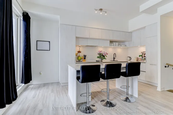 Welcome to this beautifully designed 959 sq. ft. stacked townhome that offers a seamless blend of a modern functional layout, and everyday convenience in one of Richmond Hill’s most sought after communities. Featuring soaring 9-foot ceilings and an open-concept floor plan, the space feels bright and airy, enhanced by expansive windows that flood the home with natural light. The sleek, modern kitchen flows effortlessly into the living and dining areas-perfect for both entertaining and daily living, while walk-out access to a private terrace and balcony provides an ideal outdoor retreat. Thoughtful upgrades throughout include custom glass shower enclosure, tub glass enclosure, and custom blinds, adding both style and practicality. Enjoy the convenience of underground parking and a locker, with maintenance fees covering landscaping, and snow removal. Ideally located just minutes from Highway 404, GO Transit, top-rated schools, parks, trails, shopping, and many more. This home presents outstanding value for professionals, down-sizers, or first-time buyers seeking modern comfort in a prime location.