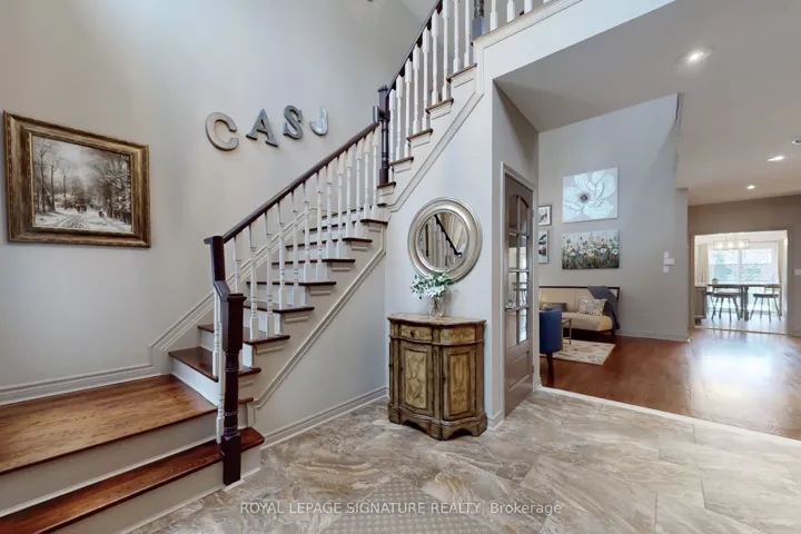 A Stunning Family home offering a whole Lotta Love! Welcome to this Upgraded and Much-loved Executive home in Prestigious +Legacy Estates+ in Markham. So much to love about this Meticulously Maintained Gem! Perfectly located across from beautiful Legacy Park with baseball diamonds, basketball courts and green space right at your doorstep. This Immaculate Chiavatti-built home offers over 2,800 sq. ft. plus a fully finished basement, showcasing pride of ownership and thoughtful upgrades throughout the years. In total you have over 4000 Sq ft to Enjoy! The main level features a dramatic Grand Entrance and a two-storey living room, 9 Foot Ceilings, a Spacious family room with Gas fireplace, built in Cabinets, and a renovated family-size eat-in kitchen with granite countertops, custom cabinetry, and a built-in table with stools. Walk out to a private, fully fenced backyard, professionally landscaped with an anchored Gazebo, garden shed, and a built-in basketball court area. Upstairs, you’ll find four spacious bedrooms and beautifully maintained baths, including a primary suite with a Walk in Closet and a large renovated ensuite with separate shower & heated floors. The finished basement adds exceptional versatility with an additional bedroom, walk-in closet, 3-piece bath, tons of storage and extended family space-ideal for guests or multi-generational living. Exterior highlights include a custom stone driveway and front steps, soffit lighting, upgraded garage floor (epoxy flooring), In ground sprinkler system, and beautifully landscaped front and back yards. Updates include Roof, windows and central vacuum. A rare opportunity to own a meticulously maintained home in one of Markham’s most sought-after family communities, just steps to parks, schools, and everyday amenities. Minutes to the 407 and 404, Markville Mall, several Hockey arenas, Soccer fields, Great Schools & Tons of Great Restaurant options!