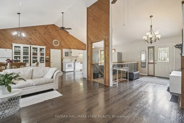Rare 1.84-Acre Bungalow Offering Space, Privacy, And Outstanding Future Potential Set On A Sprawling 200 X 400 Ft Lot In The Heart Of Peaceful Essa Township, This Exceptional Property Delivers The Kind Of Space And Opportunity That Is Increasingly Hard To Find. Enjoy The Freedom Of Nearly Two Acres Of Land While Remaining Just Minutes To Schools, Hospital, Shopping, Golf, And The Scenic Nottawasaga River Trail.Surrounded By Mature Trees, The Home Offers A Private, Estate-Like Setting With An Expansive Wrap-Around Deck Ideal For Entertaining, Family Gatherings, Or Quiet Evenings Outdoors. An Extra-Wide Driveway, Metal Roof, And Oversized Two-Car Garage With Loft Or Lift Potential Provide Practicality And Room To Grow.Inside, The Open-Concept Main Floor Features Vaulted Ceilings, Warm Wood Accents, Laminate Flooring, And A Cozy Wood-Burning Fireplace That Anchors The Living Space. The Bright Kitchen With Eat-In Area And Enclosed Porch Walkout Seamlessly Connects Indoor And Outdoor Living. The Primary Suite Offers A Walk-In Closet, Five-Piece Semi-Ensuite, And A Private Deck Walkout Overlooking The Grounds. Three Additional Bedrooms-Including One With Laundry And Walkout-Complete The Level.The Partially Finished Basement Boasts Approximately 10-Foot Ceilings, Three Separate Entrances, And Direct Garage Access-An Ideal Layout For An In-Law Suite, Rental Opportunity, Or Multi-Generational Living.With Essa Zoning Allowing Up To Two Additional Residential Units (ARUs), Subject To Municipal Approvals, This Property Presents Exceptional Upside For Those Seeking To Create Value, Expand Living Options, Or Invest In A Versatile Rural Holding. A Truly Unique Opportunity Offering Land, Lifestyle, And Long-Term Potential-All Within Easy Reach Of Everyday Amenities.