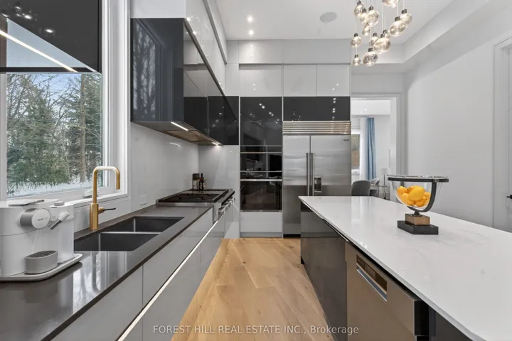 *A Private Oasis–Set on an expansive 13,971 sf. ft land*(RAVINE-LIKE/COTTAGE SETTING)*LUXURY ESTATE(just over 3-year old*Spectacular custom-built hm–over 8,200 sf living area), situated at the end of a tranquil cul-de-sac and backing onto a serene green-setting in the prestigious and convenient location!!-This UNIQUE architectural masterpiece offers over 8,200 sq.ft of meticulously designed living space inc a lower level(5,500 sq.ft/1st & 2nd flrs) that balances sophistication with comfort, and exuding timeless elegance. This estate purposefully was designed for seamless modern living, to capture nature views from multiple angles and ultimate privacy. The main flr offers 12-ft ceilings adorned with exquisite chandeliers, while a grand 24-ft raised ceiling enhances the home’s opulence and architectural unique that create airy and open feel, luminous atmosphere. The chef’s kitchen is equipped with top-of-the-line SUBZERO and WOLF appliances, a large waterfall island, complemented by a separate cooking kit for effortless entertaining. The stunning family rm showcases a 24-ft ceiling height, panoramic flr to ceiling windows, auto-controlled blinds, a dramatic 3-way gas fireplace, and direct flow into an outdoor deck & patio ideal for effortless indoor-outdoor living. This residence features four spacious bedrms upstairs, each with an ensuite bathrm showcasing premium finishes and fixtures and heated flrs. The primary suite is a private sanctuary, located in its own wing with a spa-like bathrm, generous sitting area, and serene views of the nature. The basement is an entertainer’s paradise, featuring a state-of-the-art gym with a hot-tub, spa-shower, sauna and a wet bar, a fully equipped home theatre with surround sound and custom leather recliners. The additional two-bedrm, one with an ensuite, provide ample space for family or guests.This exceptional property combines unparalleled craftmanship with smart home amenities, offering a lifestyle of luxury, and tranquility