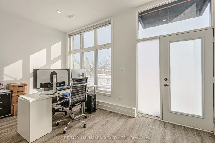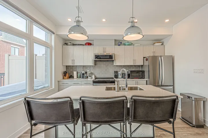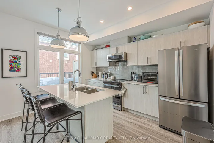 An excellent live/work or investment opportunity in the heart of Stouffville, this 3-storey Baker Hill townhome offers exceptional flexibility forbusiness owners and investors. Facing a main street, the property provides excellent commercial exposure and features commercial zoning withallowable signage and a separate main-floor entrance, making it ideal for professional, retail, or office use (buyer to verify permitted uses).Offering approximately 1,767 sq. ft. of functional space, the property includes 3 bedrooms, 4 bathrooms, and a dedicated office/studio. Theopen-concept layout features smooth ceilings, carpet-free flooring, and pot lights throughout, creating a clean and modern environment suitablefor both work and living. Notable upgrades include a contemporary kitchen with double-sink centre island, sleek cabinetry, premium microwaverange hood with 800CFM, 200-amp electrical service, an upgraded LG dishwasher, and a Tesla EV charger. The primary bedroom features aprivate ensuite and walk-in closet, while two additional well-sized rooms provide flexibility for residential, office, or meeting use. A privatebalcony equipped with a natural gas BBQ line adds additional convenience. Ideally located minutes from major transit routes, the GO Station,schools, parks, shops, and restaurants. A rare opportunity to acquire a commercially zoned townhome in a fast-growing, high-demand area withstrong long-term investment potential.