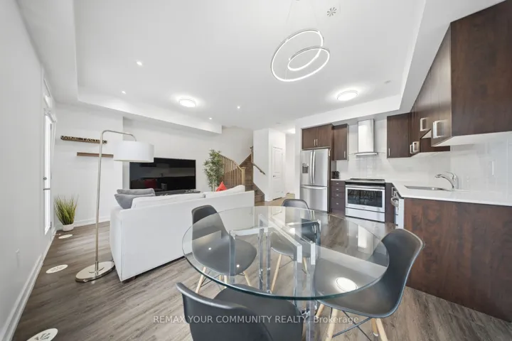 Welcome To The Exclusive Neighborhood Of Vaughan Grove, This 3 Storey End Unit Townhome Spans Over 1,200 Square Feet Of Custom Finishes In One Of The Most Affordable Family Friendly Neighborhoods In All Of York Region. This Beautifully Upgraded Townhome Features 2 Large, Sun Filled Exposed Bedrooms, A Convenient First Floor Den Ideal For A Home Office, And 2 Custom Upgraded Full Bathrooms. Turn Key Ready, This Townhome Offers 9 Foot Ceilings, A Second Floor Balcony Adjacent To The Family Room, A Custom Oak Staircase and Upgraded Light Fixtures Creating A Bright And Functional Layout That Will Make First Time Buyers And Down Sizers Feel Truly At Home. Rare Direct Garage Access And Two Spacious Parking Spots Provide Unmatched Convenience, Perfectly Suited For Small Families Or Working Professionals Constantly On The Go. Enjoy Direct Access To Major Highways 400, 401, And 407, Along With Close Proximity To A Wide Variety Of Shops, Restaurants, Schools, And Parks. This Vaughan Townhome Truly Checks Every Box On A Homeowner’s Checklist.