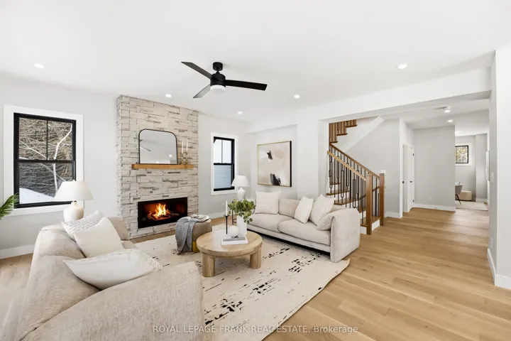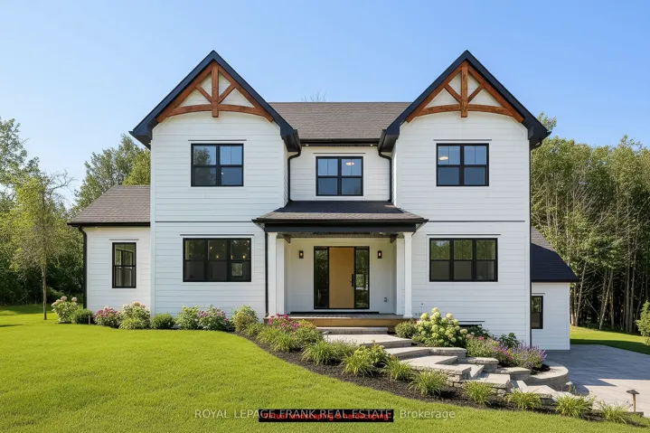 Welcome to this stunning custom-built 2-storey home, perfectly situated just minutes north of Uxbridge and directly across from Wagner’s Lake. Set on a private 0.5-acre corner lot surrounded by mature trees, this home offers the ideal blend of luxury, functionality, and peaceful country living. With 2,660 sq ft above grade, the home features hardwood flooring throughout, striking black windows, and 9-foot ceilings on the main level and basement. The bright, open-concept main floor is designed for modern living, highlighted by a custom kitchen with quartz countertops, a large island with Kitchen Aid cooktop, LG appliances, and undercabinet lighting. The living space is anchored by a cozy propane fireplace and walkout to the backyard-perfect for entertaining. The main floor also offers a dedicated office, a spacious4th bedroom, a full 3-piece bathroom, and convenient access to the large double garage through a functional mudroom. Upstairs, you’ll find three generous bedrooms, including a beautiful primary suite complete with a walk-in closet, additional closet space, and a private 4-pieceensuite. A convenient second-floor laundry room with sink adds everyday ease, while built-in closet organizers throughout maximize storage. The unfinished basement features a separate entrance, large above-grade windows, 9-foot ceilings, and a rough-in for a full bathroom-offering excellent potential for an in-law suite or additional living space. Additional features include a water softener, UV water system, and 200-amp service. The exterior is finished with durable LP Smart Side engineered siding, composite decking on the covered front porch, timber gables, and stylish exterior lighting with pot lights. The large driveway and double garage provide ample parking space. A rare opportunity to enjoy modern finishes, thoughtful design, and a tranquil setting just steps from Wagner’s Lake while also benefitting from ease of access to Uxbridge just a few short minutes away!