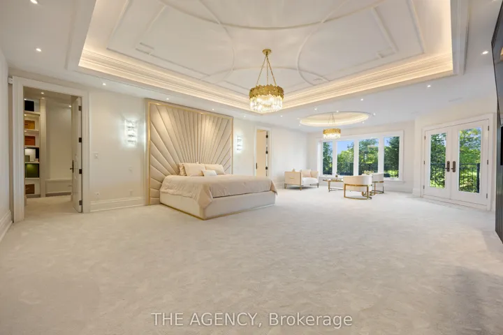 Introducing a residence of unrivaled grandeur, where architectural artistry meets timeless elegance. Nestled on ten acres of immaculate, level grounds, this extraordinary estate offers over 20,000 square feet of refined living space, where each room showcases exceptional craftsmanship and exquisite detail destined to surpass every expectation. A majestic foyer welcomes you with soaring ceilings and sweeping palace-inspired staircases, setting a regal tone for greeting guests in opulent style. Expansive entertaining salons boast custom 22-foot ceilings and walls of glass that frame panoramic vistas, immersing the interiors in natural light and breathtaking scenery. Indulge in eight sumptuous suites, including a master retreat designed as a sanctuary of comfort and serenity. Unwind in your private spa and sauna, enjoy cinematic experiences in the state-of-the-art theatre, or marvel at the serenity of an indoor waterfall that adds a touch of tranquility to your surroundings. Four elegant fireplaces enhance the ambiance throughout, while the gourmet kitchen is a chefs dream, equipped with a 60-inch Wolf gas range, Wolf hood, built-in Bosch coffee maker, offering a culinary experience as luxurious as the home itself. This estate is equipped with advanced amenities, including steam humidifiers, four furnaces, four air conditioning units, a comprehensive reverse osmosis water system, and a whole-home water softener, ensuring an uncompromising lifestyle defined by comfort and sophistication. Experience a property where luxury knows no limits, and every moment is elevated to an art form. You won’t find this level of luxury, square footage and land combined anywhere else!
