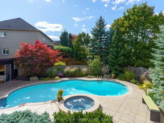 Discover a rare offering in one of Newmarket’s most prestigious neighbourhoods! This exceptional move-in ready family home in Stonehaven offers both elegant living and a resort-inspired backyard retreat. The perfect blend of luxury & comfort with over 4,500 sq ft of beautiful living space. This 4+1 bedroom, 3-bathroom home with a 3-car garage sits on a generous 58×138 ft lot with great views. Thoughtfully upgraded with inviting and functional spaces for everyday life & unforgettable entertaining. You’ll appreciate the stunning engineered hardwood floors throughout the main and upper levels (2025), complemented by beautifully renovated bathrooms including the spa-like primary ensuite (2025), upper bath (2026), and powder room (2020). The chef’s kitchen features sleek white cabinetry, Corian countertops, stainless steel GE Profile gas range & double wall ovens, breakfast bar, and spacious eat-in area, flowing into the large sun-filled family room with vaulted ceilings & cultured stone gas fireplace. Walk out from this perfect gathering space to the elevated deck overlooking your private backyard oasis. Designed for both relaxation and entertaining, the private and peaceful backyard features a saltwater pool with overspill hot tub, sunset-facing cabana, generous lounge area, and lush landscaping. The finished open-concept basement (2021) features a large entertainment/media zone, fitness space, pot lights, hardwired HDMI, abundant storage, and rough-in bath. Additional highlights include a main floor office (with integrated Murphy Bed to double as guest room), formal living and dining rooms, and a laundry/mudroom with front-load washer & dryer (2022). Major upgrades ($300K+) add lasting value throughout the property. Embrace your chance to own a truly special home with convenient access to Newmarket’s best schools and amenities, and highway 404. Are you ready to enjoy sun-filled days, afternoon swims, sunset hot tubs & peaceful evenings in your own private retreat?