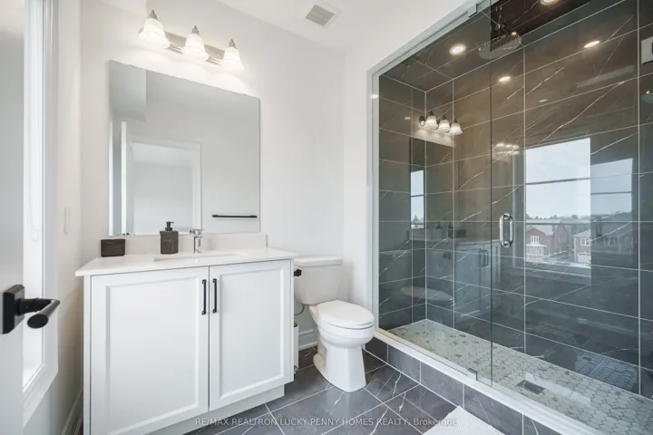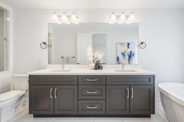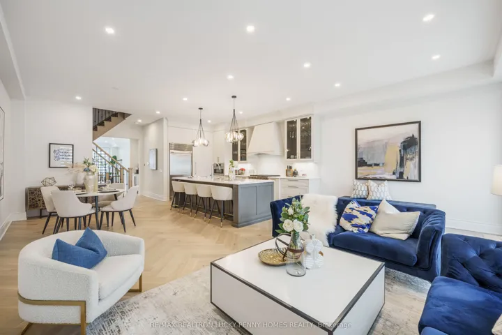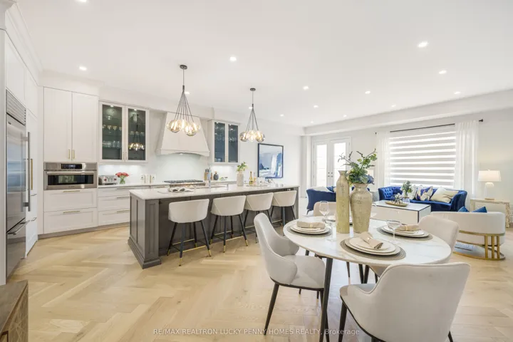 Welcome to this spectacular three-storey townhome with a rare two-car garage and a fully detached coach house, situated in the heart of Richmond Hills prestigious Observatory Hill community. As one of the largest and most coveted models in the development, this custom residence offers approximately 3,750 square feet of finely crafted living space in the main house, plus an additional 500 square feet in the private coach house an ideal setting for multi-generational living, private guest quarters, or supplementary rental income. Every inch of this home showcases exceptional quality and thoughtful design, with all upgrades completed by the builder for a seamless, cohesive aesthetic. The moment you step inside, you are welcomed by grand-scale principal rooms, soaring 10-foot ceilings, and exquisite herringbone-patterned hardwood flooring that runs throughout the main level. The open-concept living and dining areas are elegantly appointed with rich finishes and architectural detailing, setting the tone for sophisticated living. At the heart of the home lies a professionally designed chefs kitchen, a true showpiece offering an oversized centre island, top-of-the-line built-in appliances, custom cabinetry, a sleek wet bar, and a concealed walk-in pantry for optimal function and style. Perfect for hosting large gatherings or everyday family living, this kitchen is both a culinary and design masterpiece. The second floor is thoughtfully dedicated to the luxurious primary suite, offering a serene retreat complete with his-and-her walk-in closets and a lavish six-piece ensuite bath. A separate great room with elegant waffle ceilings adds versatility to this level, providing an expansive space for a second family room, home office, or even an additional bedroom, all while maintaining privacy and flow. The third floor is ideal for family or guests, featuring three generously sized bedrooms, each with its own walk-in closet and private ensuite bathroom.