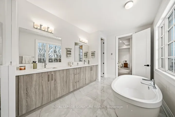Imagine beginning every day with breathtaking, uninterrupted ravine sunrises right from your private balcony. At 16 Gianvito Cres, your dream lifestyle merges with luxurious comfort in this magnificent brand-new estate, built by Fernbrook with$300,000 in builder upgrades. Step inside to discover an impressive main floor with soaring 11- to 12-foot ceilings, a stunning 9-box waffle ceiling in the family and living room, and an inviting fireplace. White Maple Hardwood floors span the main and second floors, while the kitchen and breakfast area shine with upgraded porcelain tile. The gourmet kitchen delights with an extra-large island, high-end Wolf appliances, built-in oven, a pot filler, and inspiring views of the lush ravine, keeping your spaces filled with sunlight from morning till evening. Entertain with ease thanks to the formal dining room with direct kitchen access. The spacious primary bedroom features two walk-in closets, a balcony overlooking the ravine, and a spectacular ensuite bathroom, Primary ensuite is heated floor .Additional highlights include a separate side entrance with potential for a basement suite and a 60-amp rough-in for a car charging station. Please see the attached file for a complete list of upgrades.