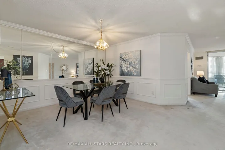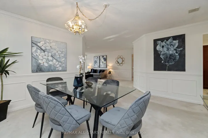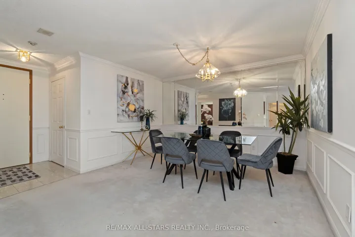 Enjoy effortless, low-maintenance living in this spacious, freshly painted 1,550 sq ft Berkshire model in one of Unionville’s most prestigious residences. Designed for comfort without compromise, this suite easily accommodates house-sized furniture and gatherings of family and friends while offering the security and convenience of a luxury building with underground parking, an elegant lobby, 24-hour concierge and exceptional amenities. Residents enjoy a fully equipped gym, indoor and outdoor pools, party and games rooms, squash courts, outdoor BBQ areas and guest suites for visiting loved ones. A welcoming foyer opens to a generous dining area ideal for entertaining, flowing into a large living room with crown mouldings and an adjoining sunroom – perfect for a quiet morning coffee – with walk-out to a covered balcony for relaxing afternoons. The updated eat-in kitchen provides abundant cabinetry and counter space. A desirable split-bedroom layout offers privacy for each room, with a primary suite large enough for a king-sized bedroom set, two walk-in closets and a full ensuite with a walk-in shower, while the second bedroom sits beside a second full bath and in-suite laundry. An ensuite storage room keeps essentials close at hand, and the unit includes one parking space and locker. All-inclusive maintenance fees cover heat, hydro, water, central air, cable, internet, building insurance and more, and the heat pumps have been updated. A perfect opportunity to enjoy a comfortable, worry-free condo lifestyle in a sought-after community! Walk to Markville Mall, the GO Station, Community centre, groceries, pharmacies, nature trails and more. Close to Unionville Main St, multiple bus lines just steps away, and there is easy 404 & 407 access!